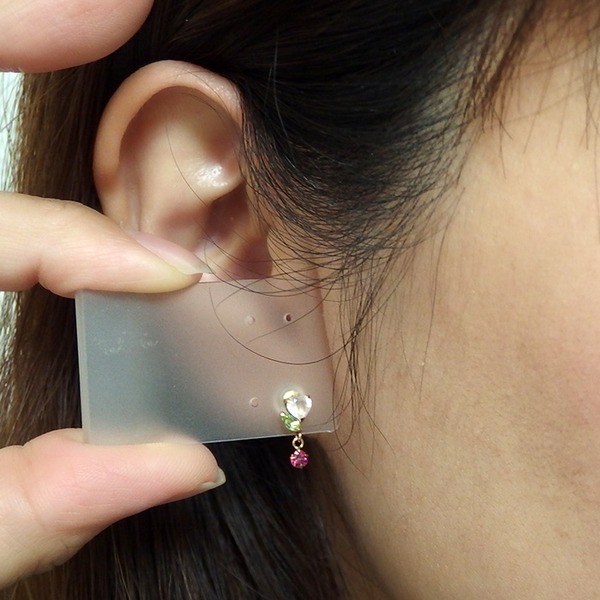 また、ピアスを落としてしまう不安や指や耳にかかる負担を最大限軽減するため、キャッチ部分にも贅沢にシリコンとK10金ゴールド素材のダブルキャッチを採用しております。