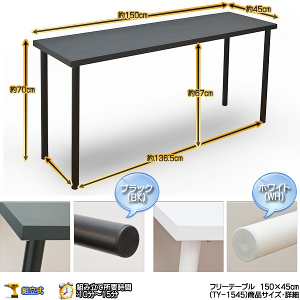 スペースに合わせたチョイスが可能なフリーテーブル150cm幅、奥行き45cmです