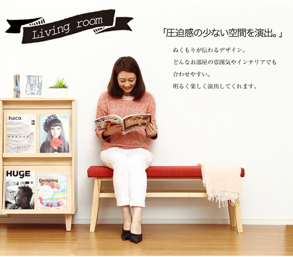 ベンチ:天然木化粧繊維板(アッシュ)、ウレタン塗装、ポリエステル、コットン