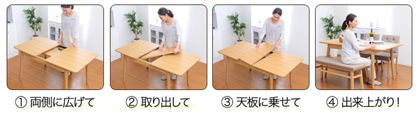 テーブル:(約)幅120〜150x奥行き80x高さ72cm