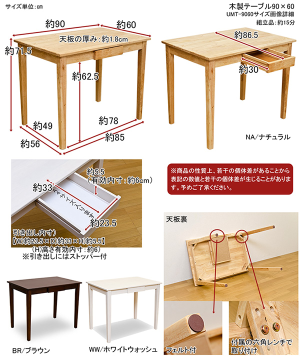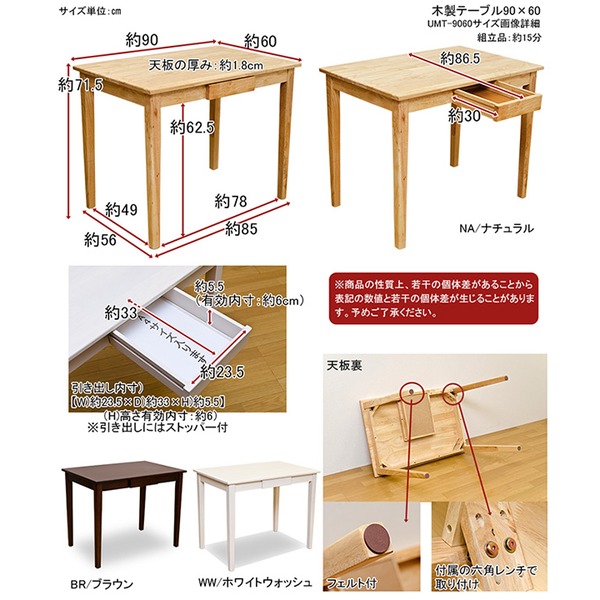 こちらは「木製テーブル 【90cm×60cm】 引出し1杯付き ナチュラル 〔リビング/ダイニング/作業台〕」の商品ページです。商品画像や商品情報には、色違いやサイズ違いの商品が載っている場合がございます。ご注文前に色・サイズ・セット内容のご確認をお願いいたします。