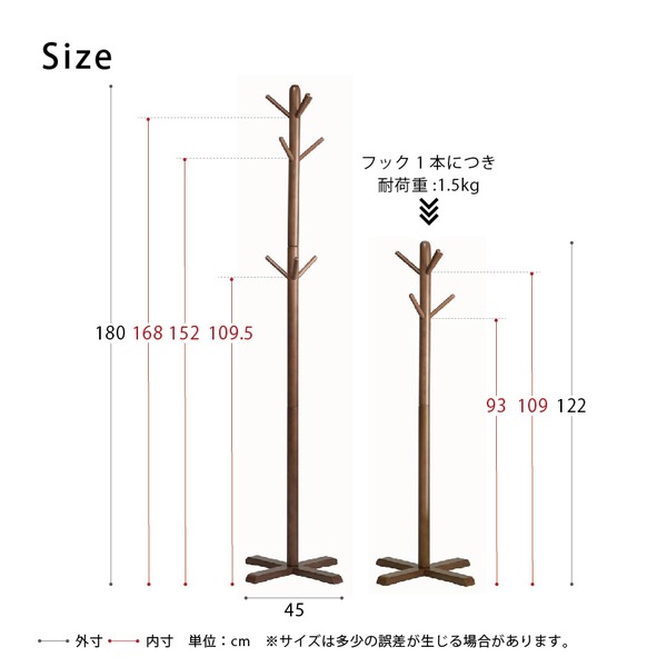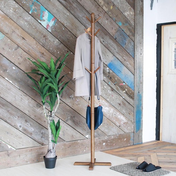 リビングハンガー(もく)(ブラウン/茶) 高さ180cm ポールハンガー 木製 天然木 北欧風 2WAY キッズ 子供 シンプル 洋服掛け 帽子掛け コートハンガー 収納 NK-725