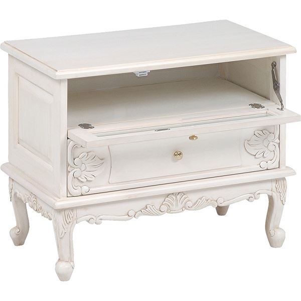 エレガントな彫刻とねこ脚、アンティーク風の上品なテレビ台。ビデオデッキなどの収納もバッチリ。