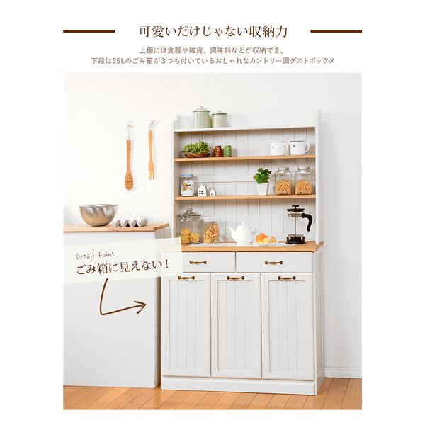 棚や引出しには収納も出来るゴミ箱に見えないデザイン、3分別ダストボックス。25リットルタイプ。