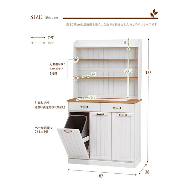 ダストボックス ゴミ箱 約幅87cm 3分別 ホワイト 25Lペール3個付き 収納付き キッチン 台所 引っ越し【代引不可】