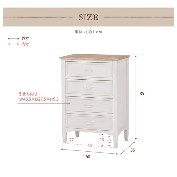 チェスト 収納棚 4段 約幅60cm ホワイト 木製 脚付き 桐材 取っ手付 ブロカントシリーズ ローチェスト 完成品 リビング【代引不可】