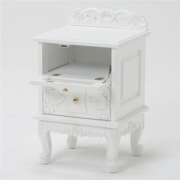 サイドチェスト 収納棚 約幅40cm アンティークホワイト 木製 フラップ扉 引き出し 脚付き ヴィオレッタシリーズ 完成品 リビング【代引不可】