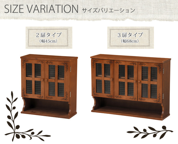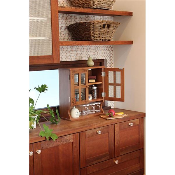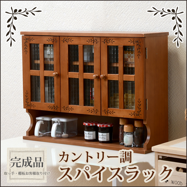 調味料ラック スパイスラック 幅68cm ライトブラウン 木製 扉 可動棚付き カントリー調 キッチン 台所【代引不可】