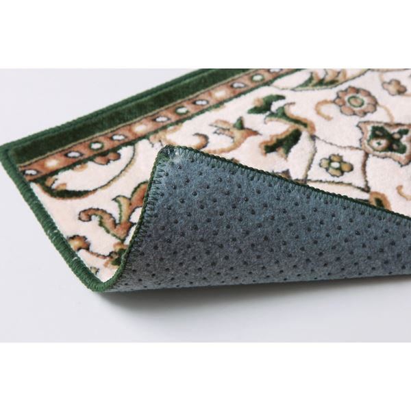 室内用 玄関マット/フロアマット 【あがり框 王朝柄 グリーン 30×90cm】 洗える 防滑加工 モケット織 〔入口 リビング〕【代引不可】
