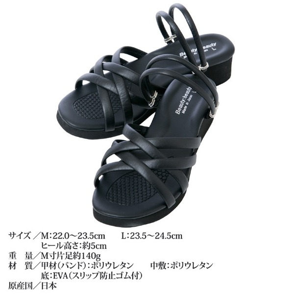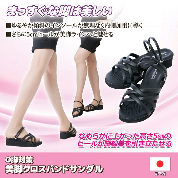 O脚対策 美脚 クロスバンド サンダル Mサイズ 22.0〜23.5cm Wストラップ ヒール高さ5cm 日本製
