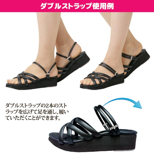 ストラップ部分は、そのまま履いても、かかとに掛けても履くことができるWストラップ形状です。