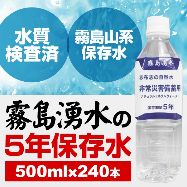 【まとめ買い】霧島湧水 5年保存水 備蓄水 500ml×240本(24本×10ケース) 非常災害備蓄用ミネラルウォーター