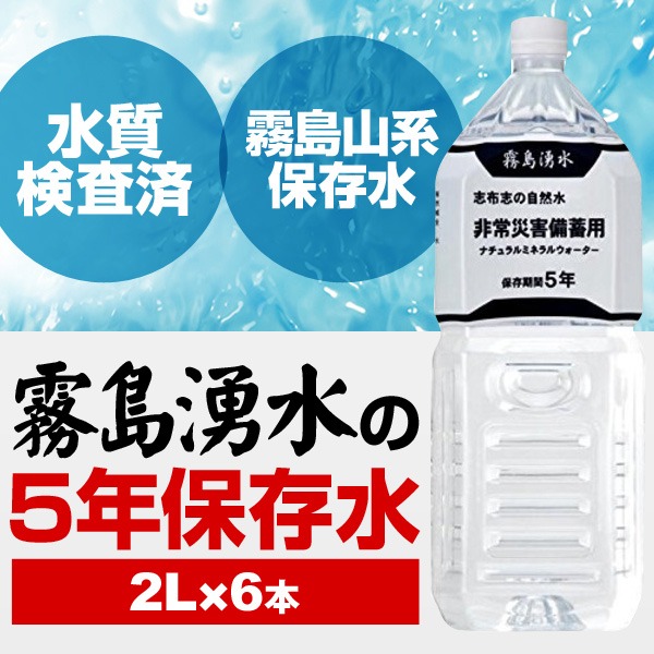 霧島湧水 5年保存水 備蓄水 2L×6本(1ケース) 非常災害備蓄用ミネラルウォーター