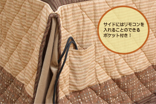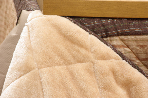 べとつかずサラっとした肌触りのしじらの高脚用こたつ掛け布団です。裏地にはあったか素材のボアを使用しています。薄手なので折りたたんでもかさばらず、コンパクトに収納できます。部分暖房のこたつは電気代もおトクです。