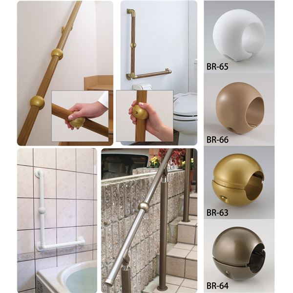 ・横や斜めに取り付ける手すりはもちろん、タテ型の手すりには、どの角度からでもつかみやすいボール形が最適です。