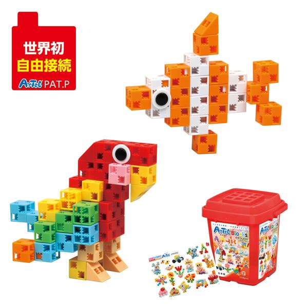 ブロック:ABS、プラバケツ:PP、作例集:紙