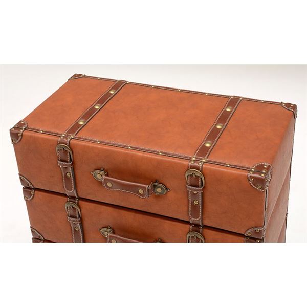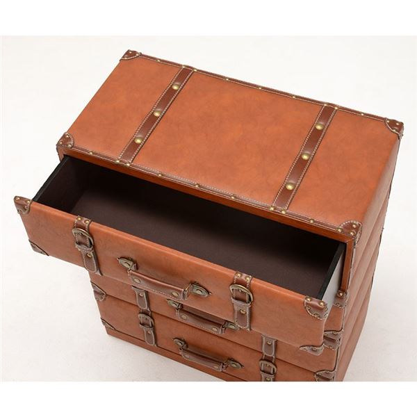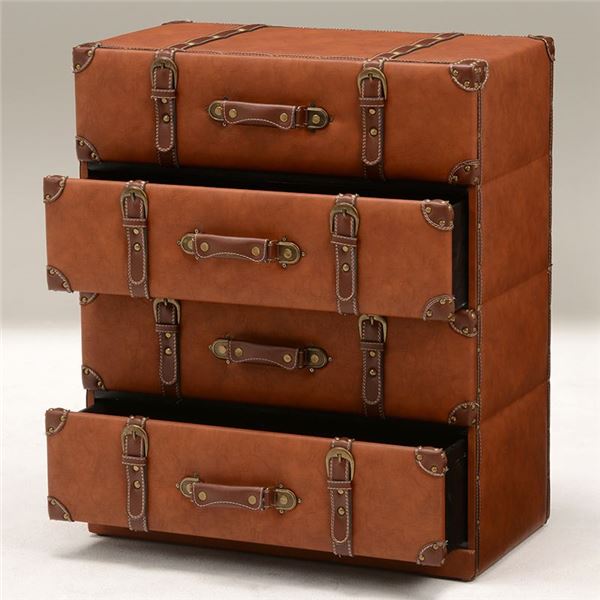 チェスト タンス 4段 幅60cm ライトブラウン 合皮 合成皮革 トランク型チェスト リビングチェスト リビング収納 インテリア家具【代引不可】