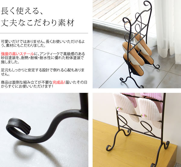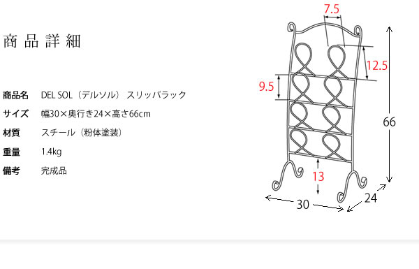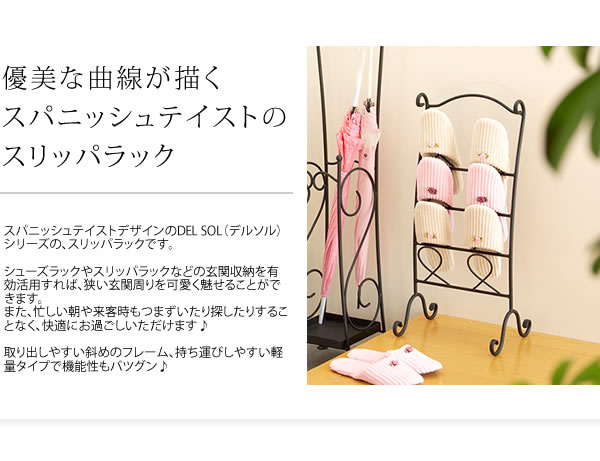 スパニッシュテイストデザインのDEL SOL(デルソル)シリーズの、スリッパラックです。