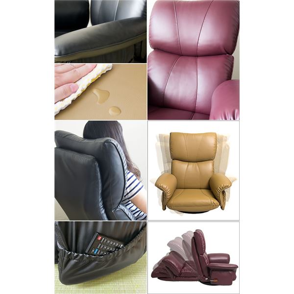 日本製、スーパーSOFTレザー、HIGH BACK、5段ヘッドリクライニング、レバー式13段リクライニング、座面360度回転
