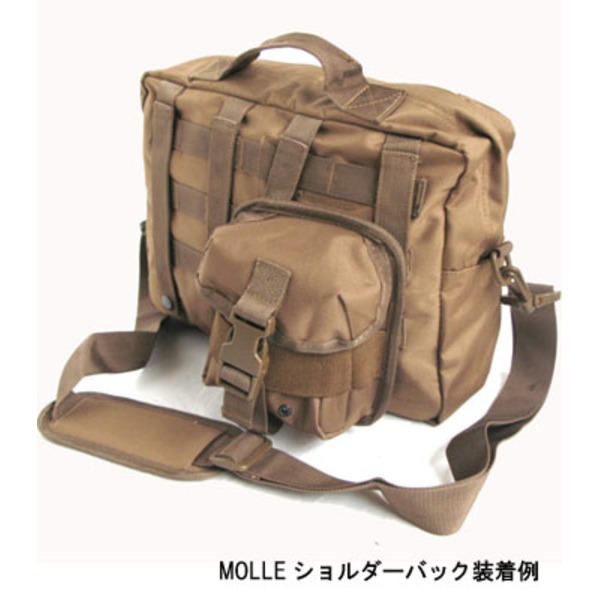 表側にはMOLLEシステムが採用されていますので、色々なバックに取り付けることが可能です。「アサルトリュックやMOLLEショルダー、スカウトバッグ等、MOLLE仕様のバッグ各種に取り付けが可能です