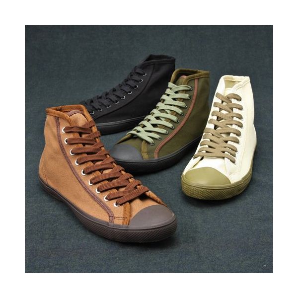 そんな軍隊モデルでありながら、ファッションアイテムとしても使えるデザインになっているのが◎カラーは【ホワイト】【ブラック】【ブラウン】【オリーブ】の4色から選べます。レトロでノルタルジックな印象はデニムとの相性もよく、カジュアルシーンでガンガン使える一足になっています!