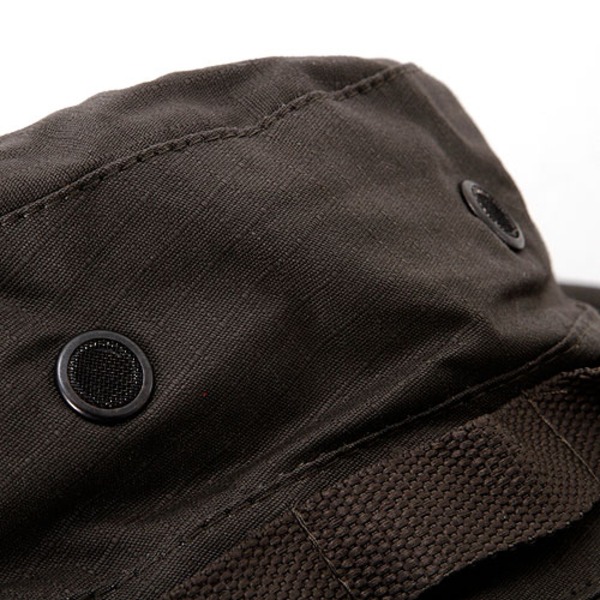 アメリカ軍がベトナム戦争時に使用したジャングルハットの精巧なレプリカ。生地は綿100%、4箇所の通気口があいているため、蒸れを軽減する。