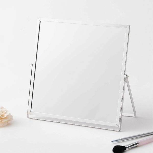 【12枚セット】 アルミフレーム卓上ミラー(L/シルバー/銀) 卓上鏡/カガミ/メイク/シンプル/飛散防止加工/角度調整可/大型/ワイド/業務用/完成品/NK-248
