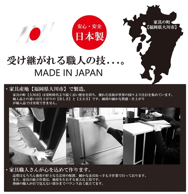 天面、側板面材には単板風の3mm厚の面材を使用しており高級感があります。