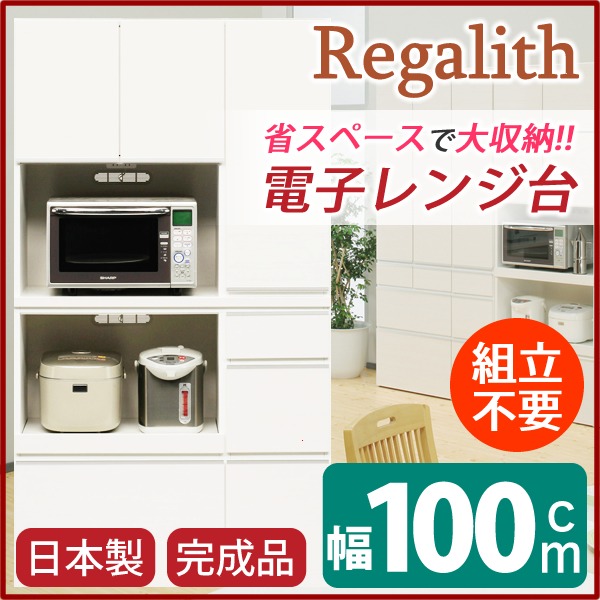 レンジ台 キッチン収納 幅100cm ホワイト 木目調 2口コンセント スライドテーブル付き 日本製 ハイレンジボード 完成品 玄関渡し【代引不可】