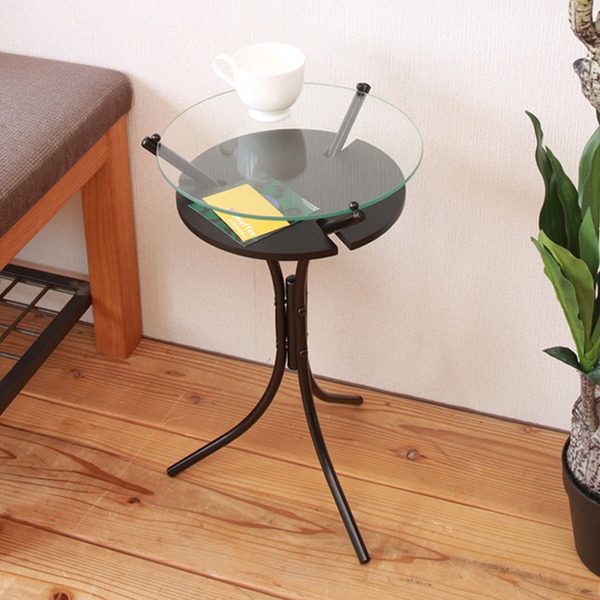 ガラストップサイドテーブル(ブラック)