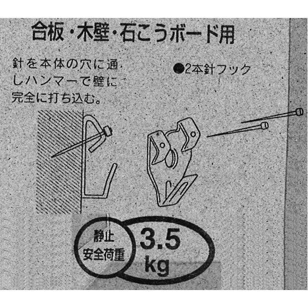 2本針フック3006(合板・木壁・石こうボード用)