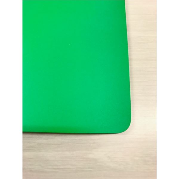 緑と黒の軟質塩化ビニールを張り合わせた非常に耐久性のある2.5mm厚のデスクマット。筆記や押印などが頻繁に行われる各種受付、カウンター、記入台、記載台などに最適です。上下左右の辺にデザインアクセントとなるギザギザが施されています。グリーン購入法適合で環境配慮タイプのデスクマットになります。