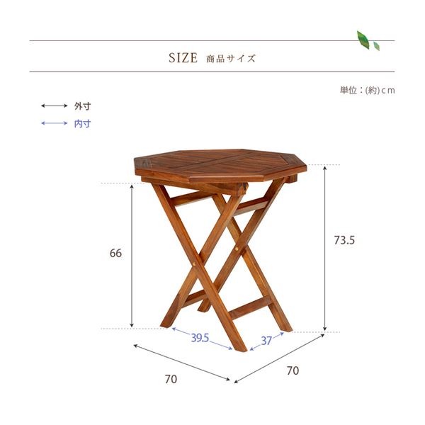 折りたたみテーブル 幅70cm 八角形 チーク材使用 木目調 木製 ガーデンテーブル アウトドアテーブル キャンプ【代引不可】
