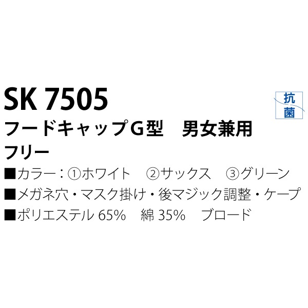 工場用白衣/ユニフォーム 【男女兼用フードキャップ G型 ホワイト】 抗菌機能 後マジック調整・ケープ付 『workfriend』 SK7505