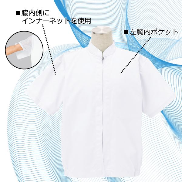 工場用白衣/ユニフォーム 【男女兼用半袖 Sサイズ/ホワイト】 インナーネット付 『workfriend』 SKA2612