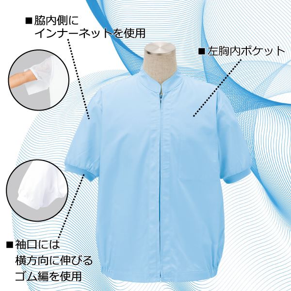 工場用白衣/ユニフォーム 【男女兼用半袖 4Lサイズ/サックス】 インナーネット付 袖口フライス使用 『workfriend』 SKA2615