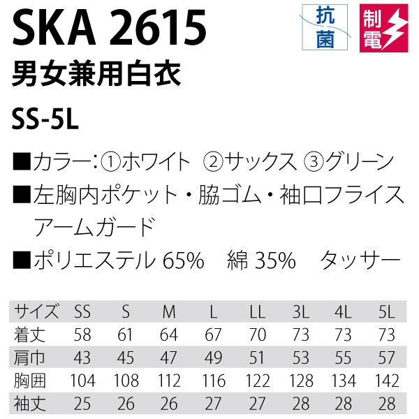 年々厳しくなる消費者の異物混入への意識。工場用白衣男女兼用半袖 インナーネット付 SKA2615は脇内側にインナーネットを使用し、異物混入防止をしっかりサポート。袖口にフライスを使用することでリストガードと併せて強力ガード。