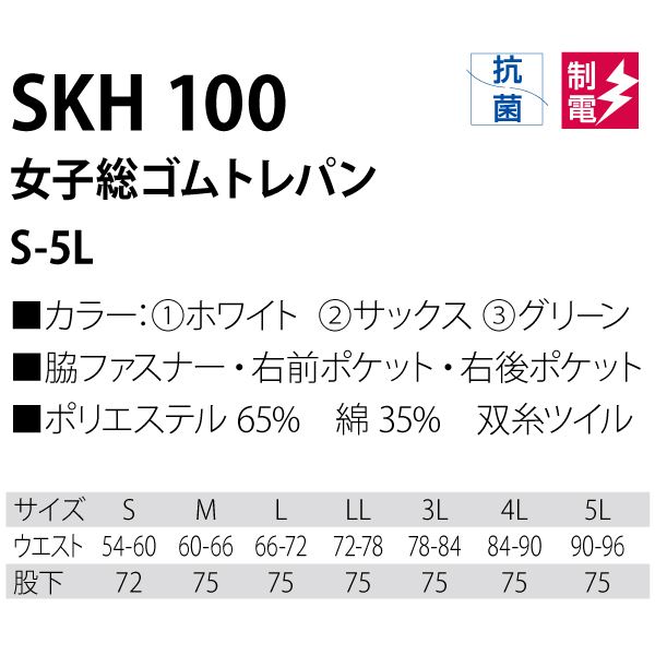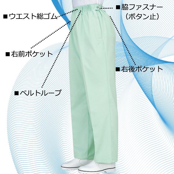 工場用白衣/ユニフォーム 【女子 総ゴムトレパン S/グリーン】 ノータック 脇ファスナー 抗菌・制電 『workfriend』 SKH100