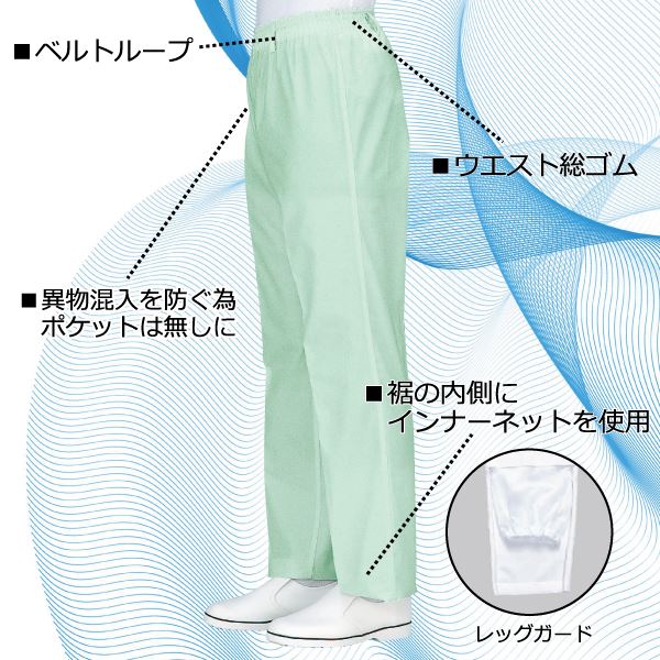 工場用白衣/ユニフォーム 【男子 総ゴムトレパン Sサイズ/グリーン】 インナーネット付 ノータック 『workfriend』 SKH229