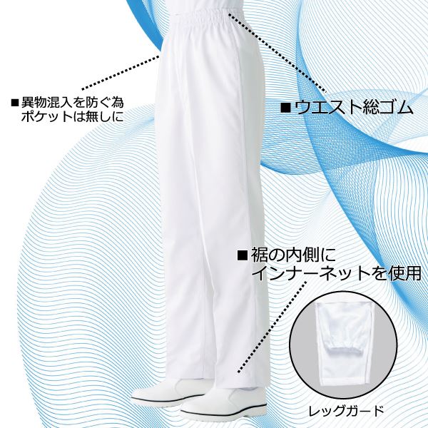 年々強まる異物混入への関心。体毛落下は異物混入で一番多いもの。その体毛落下へ対応するべく裾部分にインナーネットを採用。安心安全な工場用白衣総ゴムトレパンをめざしました。さらにポケットを付けないことで工場内へ異物などの持込を抑止します。