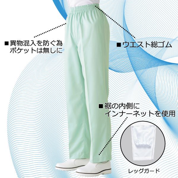 年々強まる異物混入への関心。体毛落下は異物混入で一番多いもの。その体毛落下へ対応するべく裾部分にインナーネットを採用。安心安全な工場用白衣総ゴムトレパンをめざしました。さらにポケットを付けないことで工場内へ異物などの持込を抑止します。