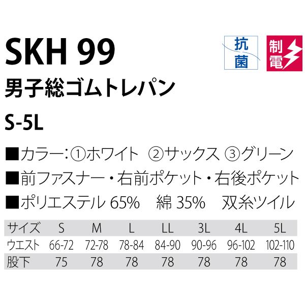 工場用白衣/ユニフォーム 【男子 総ゴムトレパン 5Lサイズ/グリーン】 ノータック 前ファスナー 抗菌・制電 workfriend SKH99