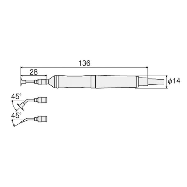 ・プローブ外形寸法(mmφxmm):14(最大)×136(ノズル直、パットL装着時)