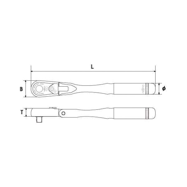 ●6.3sq.のラチェットハンドル本体に9.5sq.ドライブを組み込んだコンパクトタイプのラチェットハンドルです。
