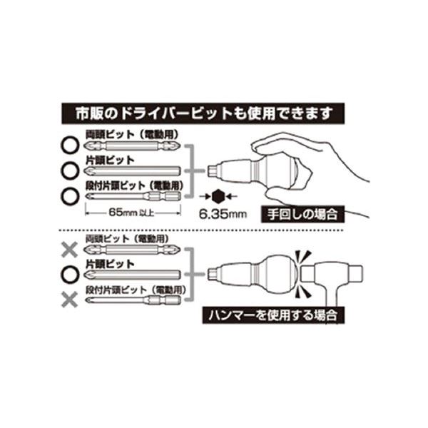 ※手回しの場合は「両頭ビット(電動用)」「片頭ビット」「段付片頭ビット(電動用)」65mm以上使用可能。