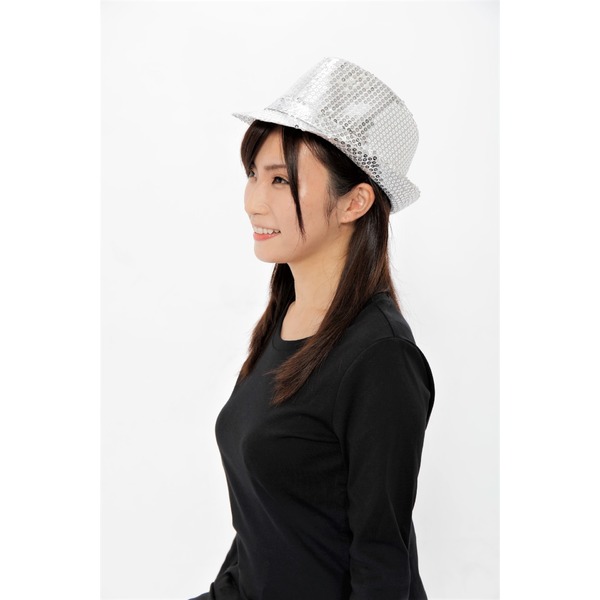 【コスプレ】 スパンコールハット /帽子 【シルバー】 ポリエステル製 頭囲約60cm 〔イベント 仮装 舞台小物〕【代引不可】
