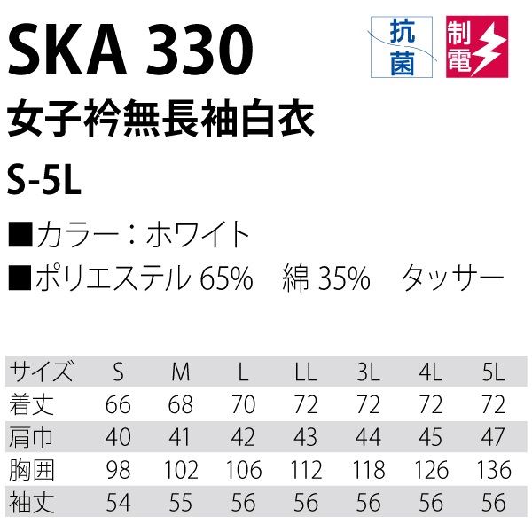 workfriend 調理用白衣女子衿無長袖 SKA330 3Lサイズ