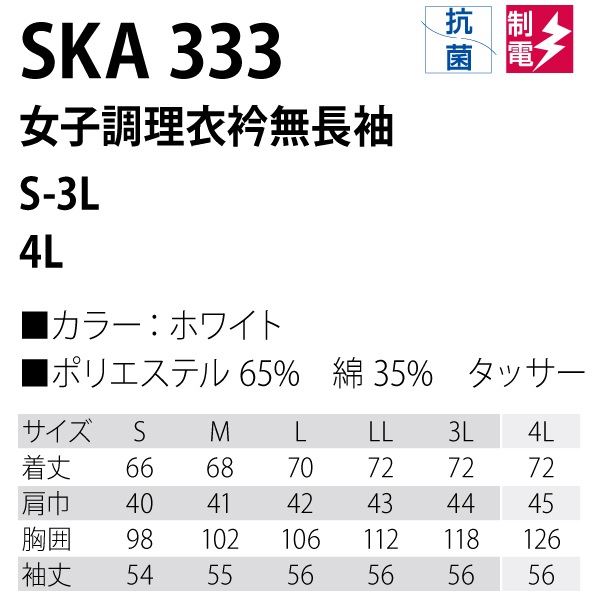 workfriend 調理用白衣女子衿無長袖 SKA333 Lサイズ