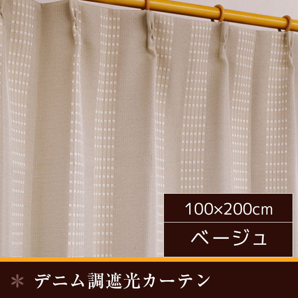 デニム 遮光カーテン / 2枚組 100×200cm ベージュ / 洗える 形状記憶 『オーチャード』 九装