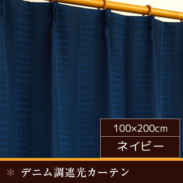 デニム 遮光カーテン / 2枚組 100×200cm ネイビー / 洗える 形状記憶 『オーチャード』 九装